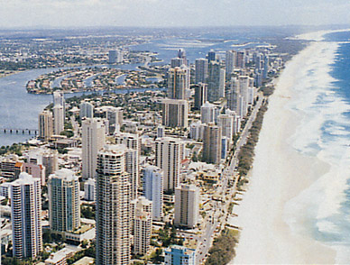 | 人口142,000人。約70kmにも及ぶ海岸線に立ち並ぶ高層ホテル郡、世界屈指の リゾートとして知られるゴールドコーストでは、年中通して温暖な気候が続き、(年